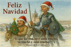 juanjeda Granátula, Otros artículos 16 diciembre 2025 Comments Disabled Feliz Navidad y Feliz Año nuevo Os deseo que paséis una Feliz Navidad y un Feliz Año 2026. Con el fondo de Granátula y Don quijote y Sancho deseando que leamos mucho, os envio un abrazo. Juan Jesús Donoso Azañón. Feliz Navidad y año 2026